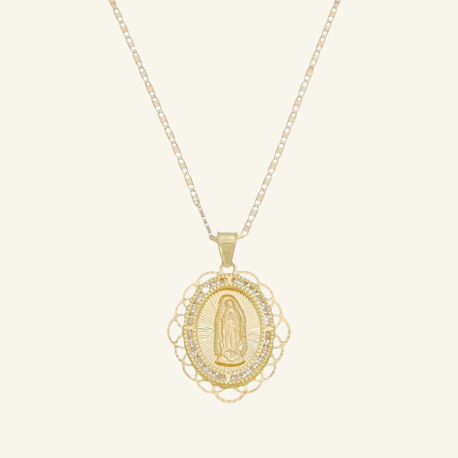 COLLAR PLANO FLORENTINO CRUZ VIRGEN DE GUADALUPE ORO 14K