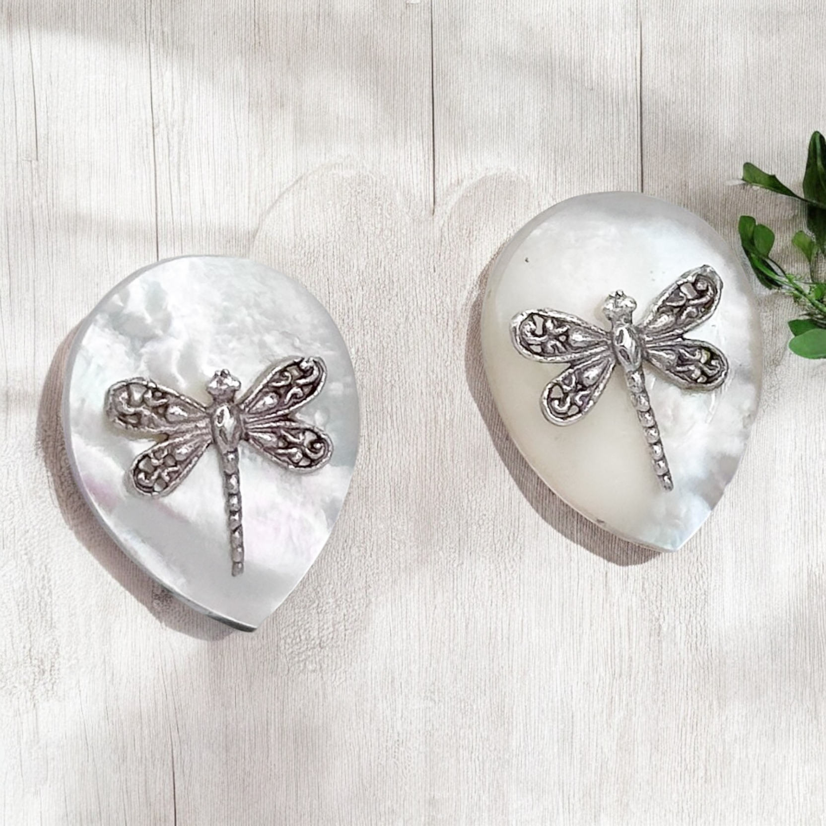 SILVER DRAGONFLY DROP PEARL EARRING .925