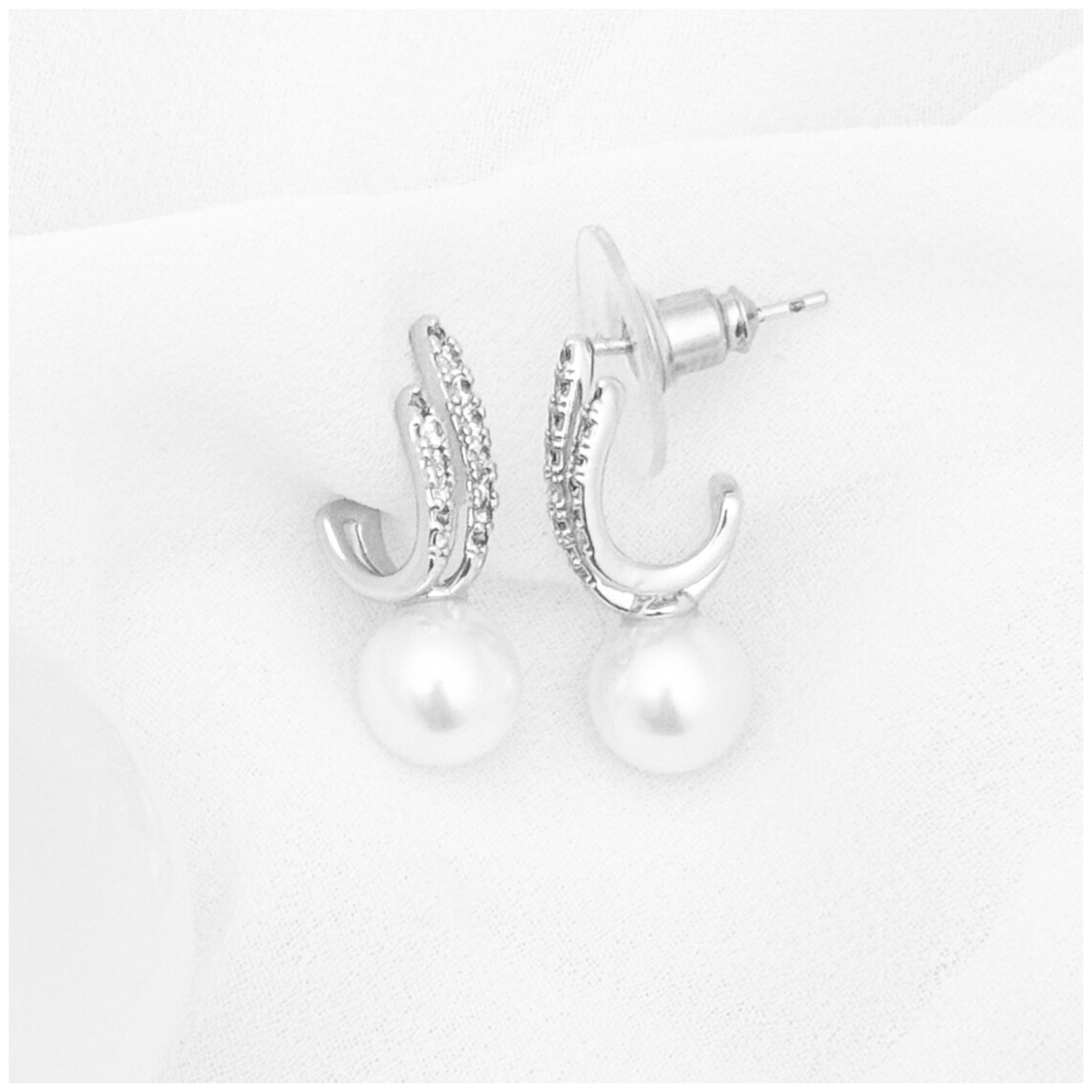 ARETE DE DOS BARRAS CON CIRCONIAS Y PERLA EN ORO LAMINADO BLANCO