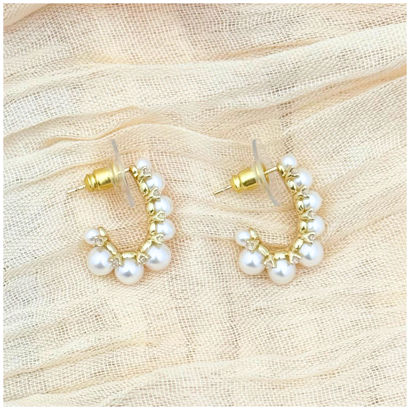 ARETE MEDIA LUNA CON POSTE EN LINEA CON PERLAS Y CIRCONIAS EN ORO LAMINADO
