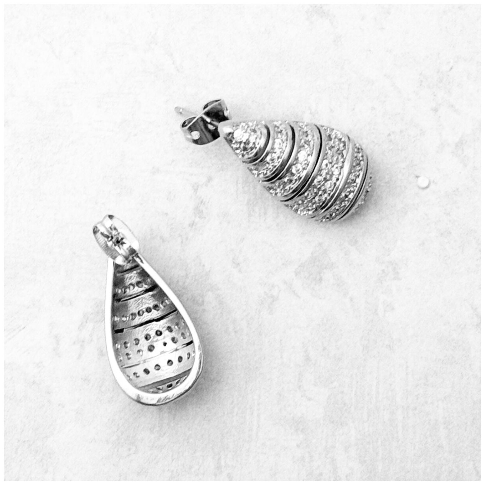 ARETE DE POSTE EN FORMA DE GOTA CON CIRCONIAS EN COLOR BLANCO DE CHAPA
