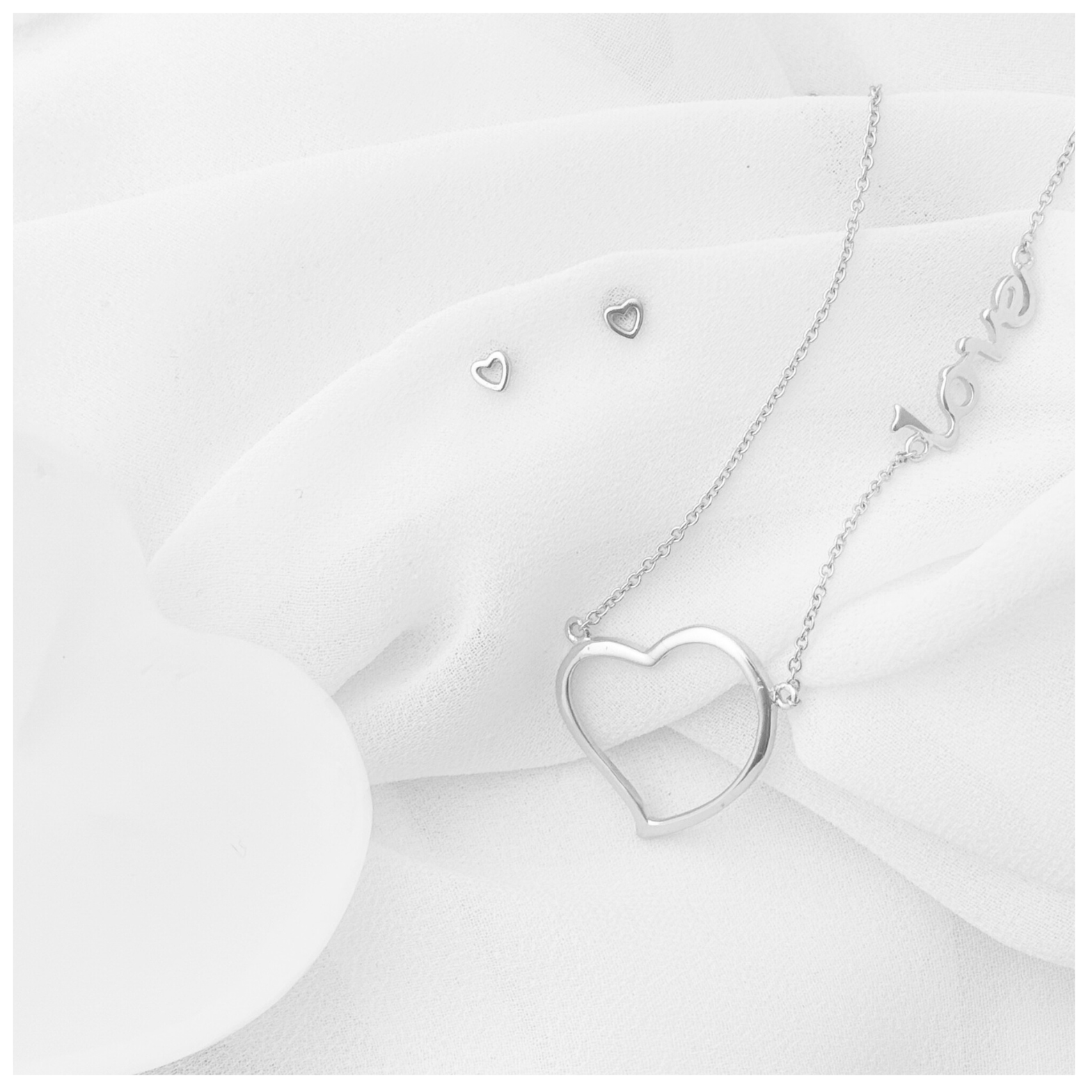 SET DIJE CORAZON LISO LOVE PLATA .925 RODIO