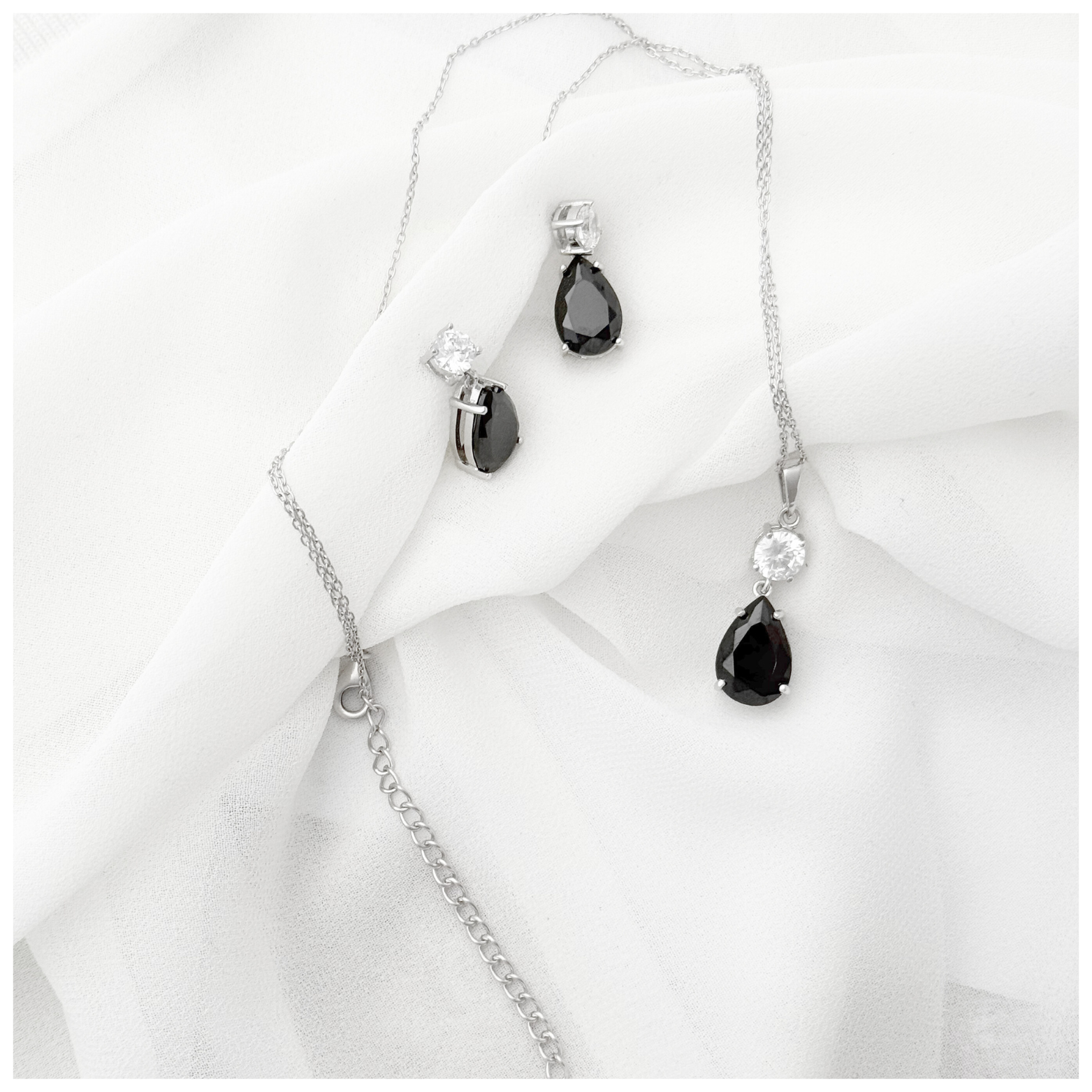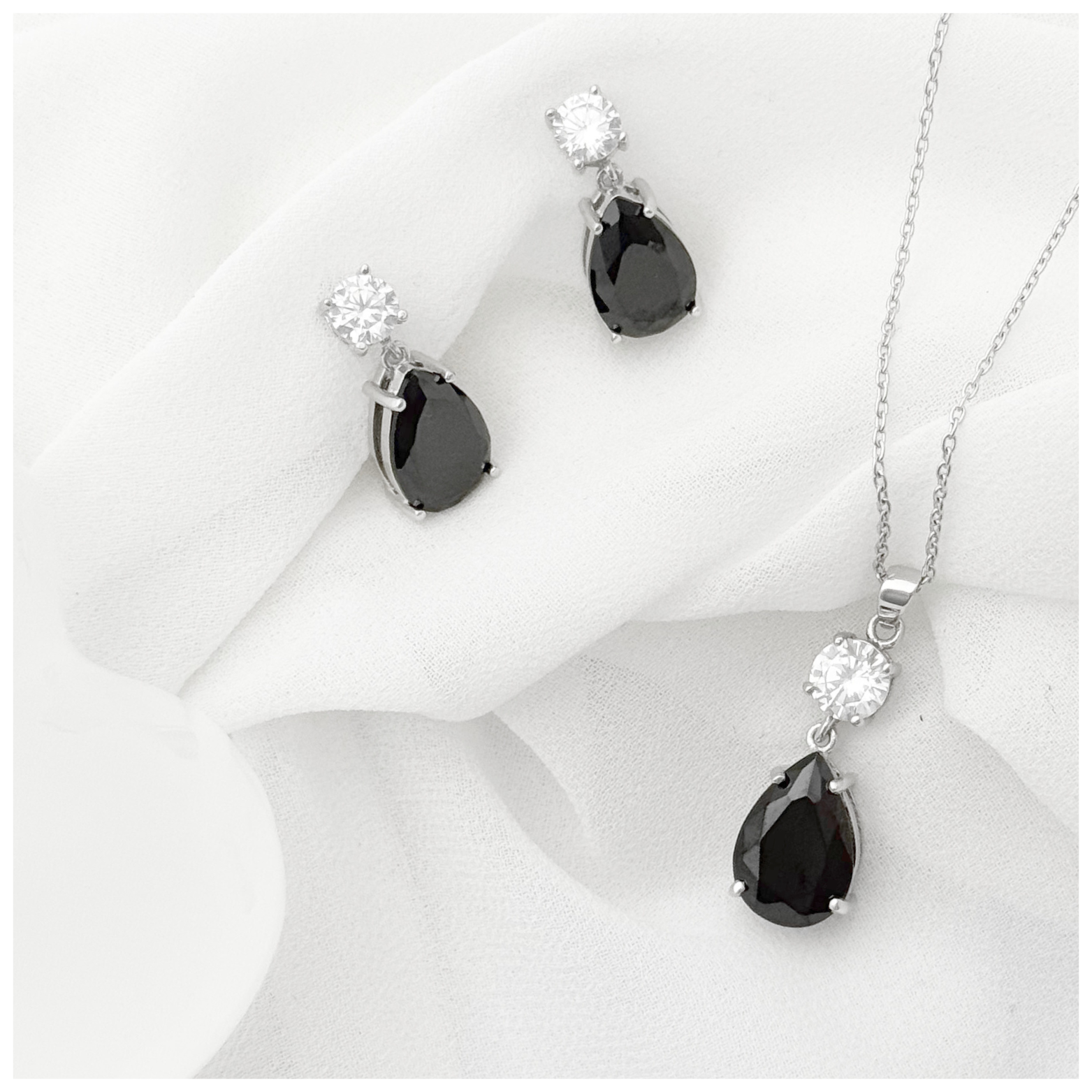 SET DIJE EN FORMA DE LAGRIMA EN CIRCONIA NEGRA Y BLANCA PLATA .925 RODIO