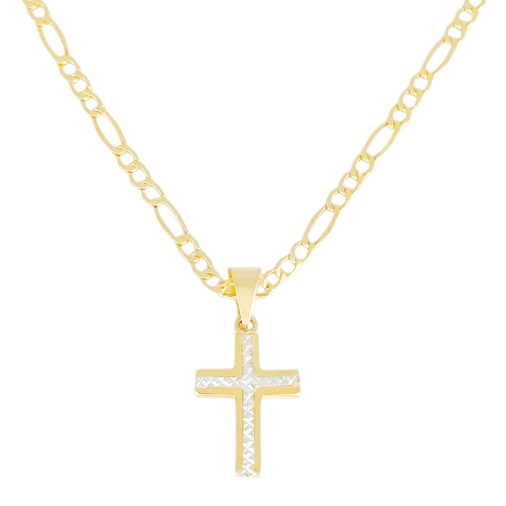 COLLAR FIGARO CRUZ DIAMANTADA ORO 14K
