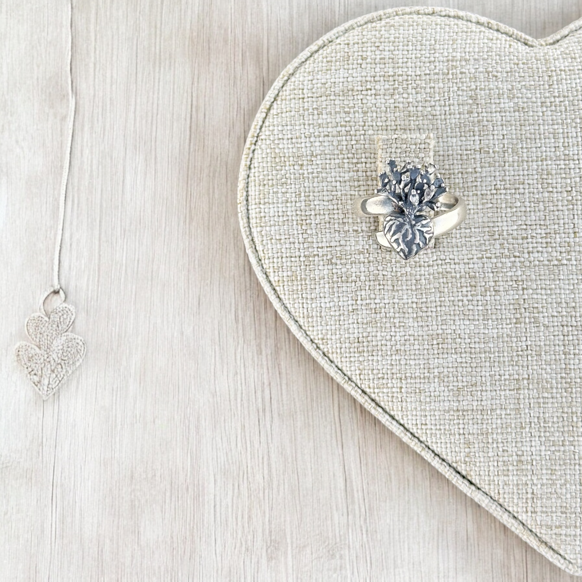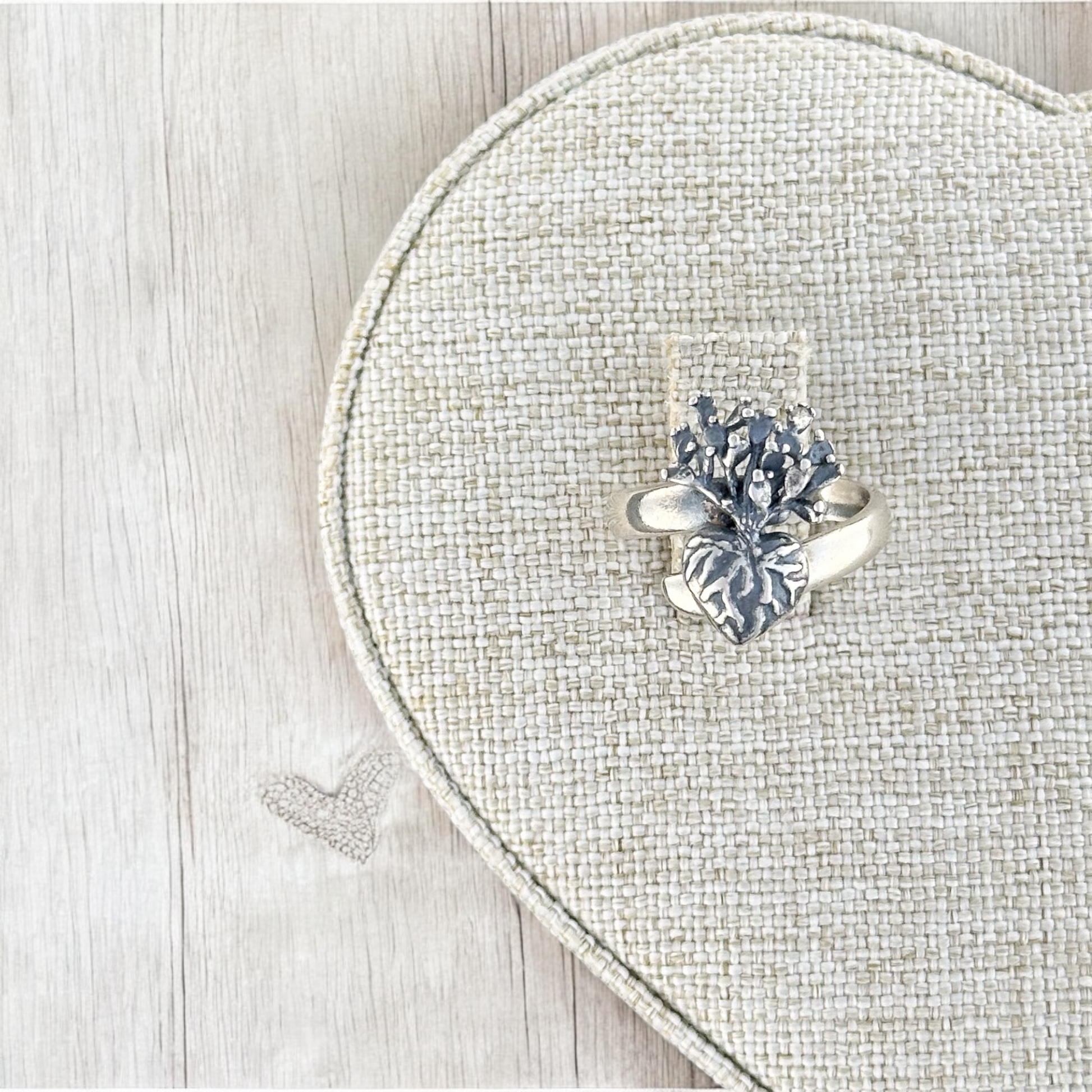 Anillo de corazón con diseño de nopal elaborado en plata .925 , mientras que el nopal simboliza la fuerza y la resistencia.