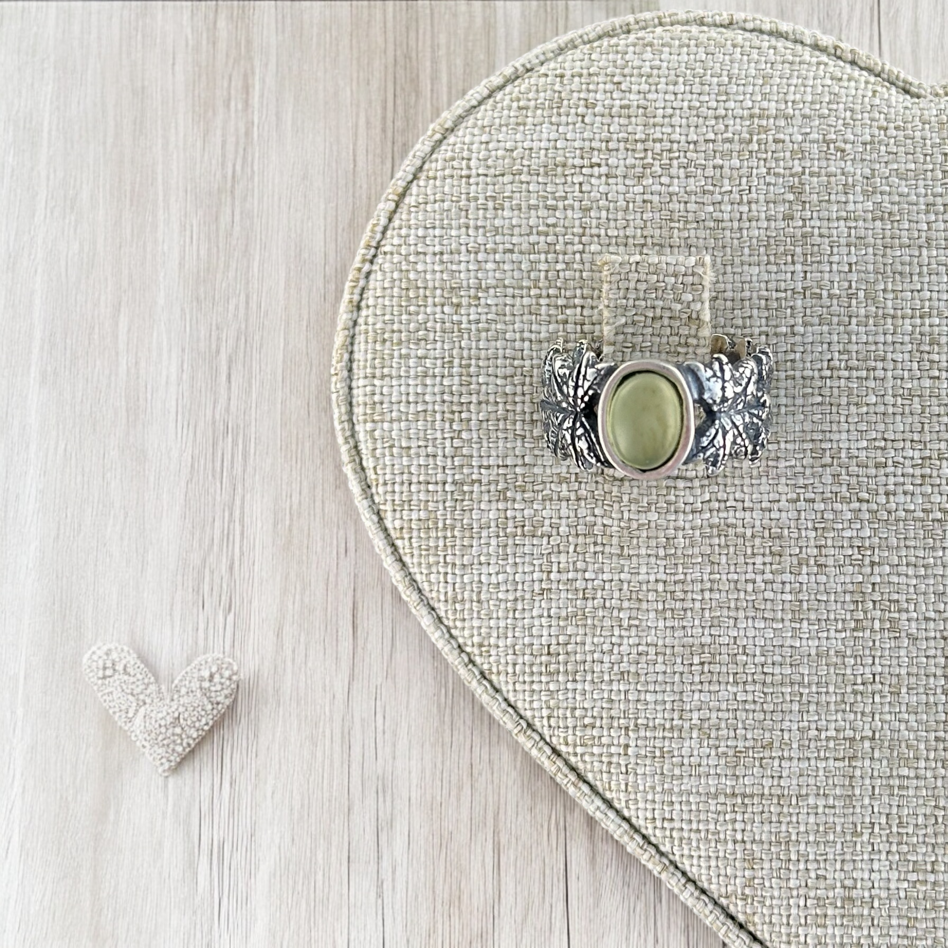 ANILLO HOJA DE PARRA UVAS PLATA .925 Hecho de plata .925 ,adornado con una hermosa piedra de jadeíta y plata pavonada ,simboliza la vida y la prosperidad
