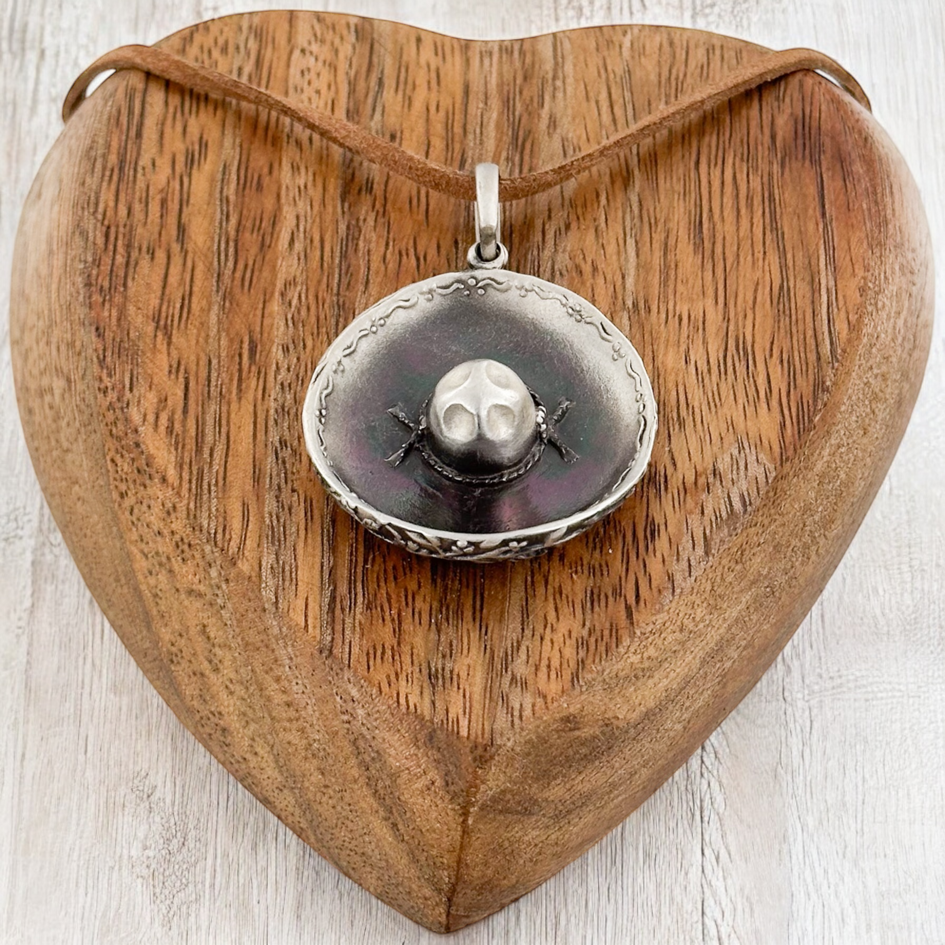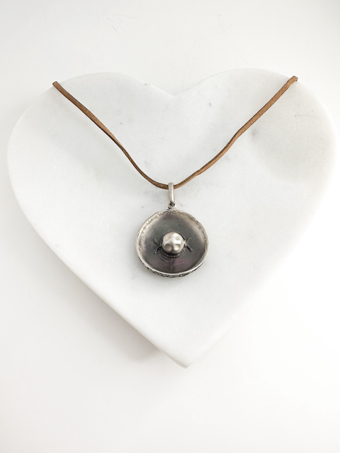 DIJE SOMBRERO CHARRO Collar gamuza con dije sombrero de charro en plata .925 con terminado antiguo con detalles finos