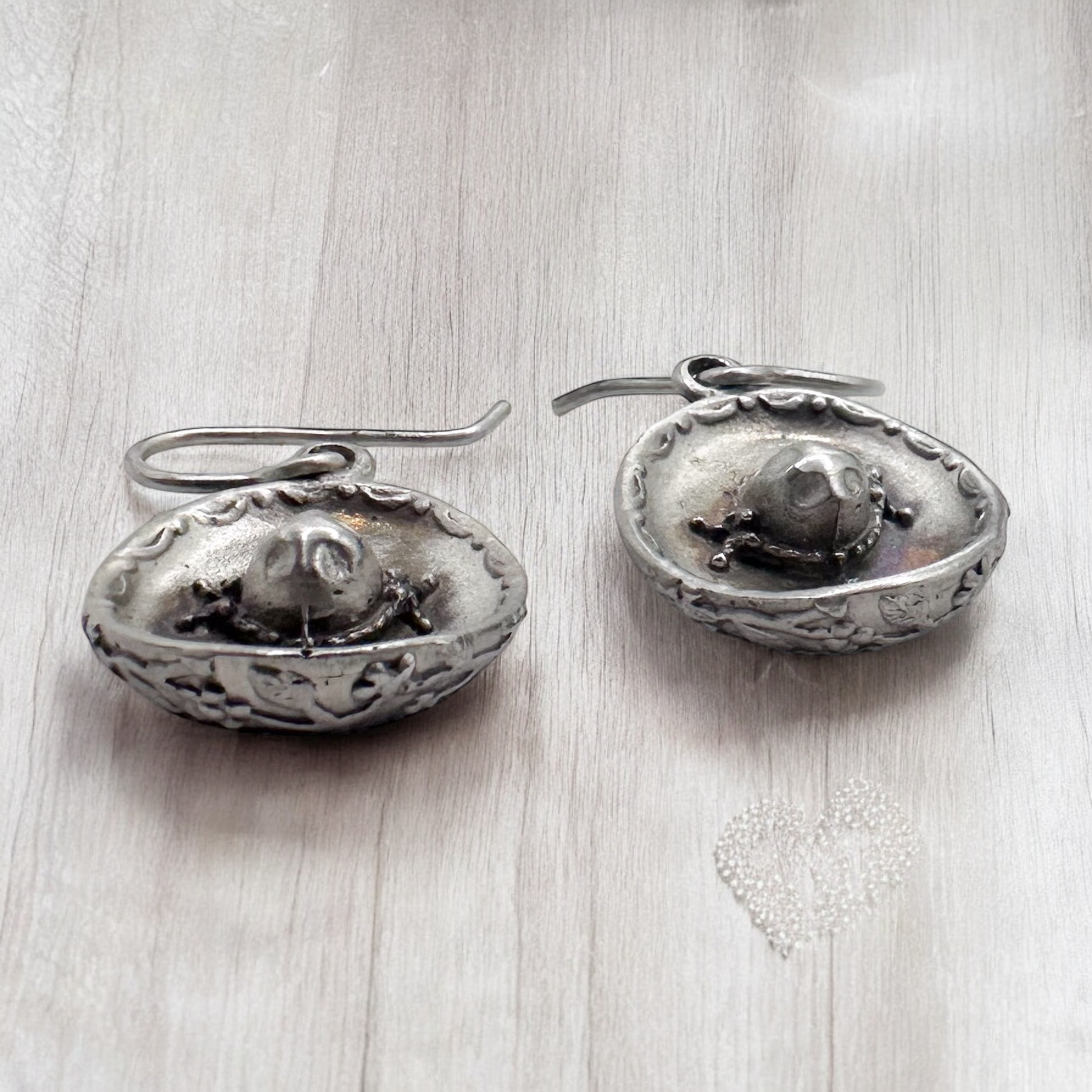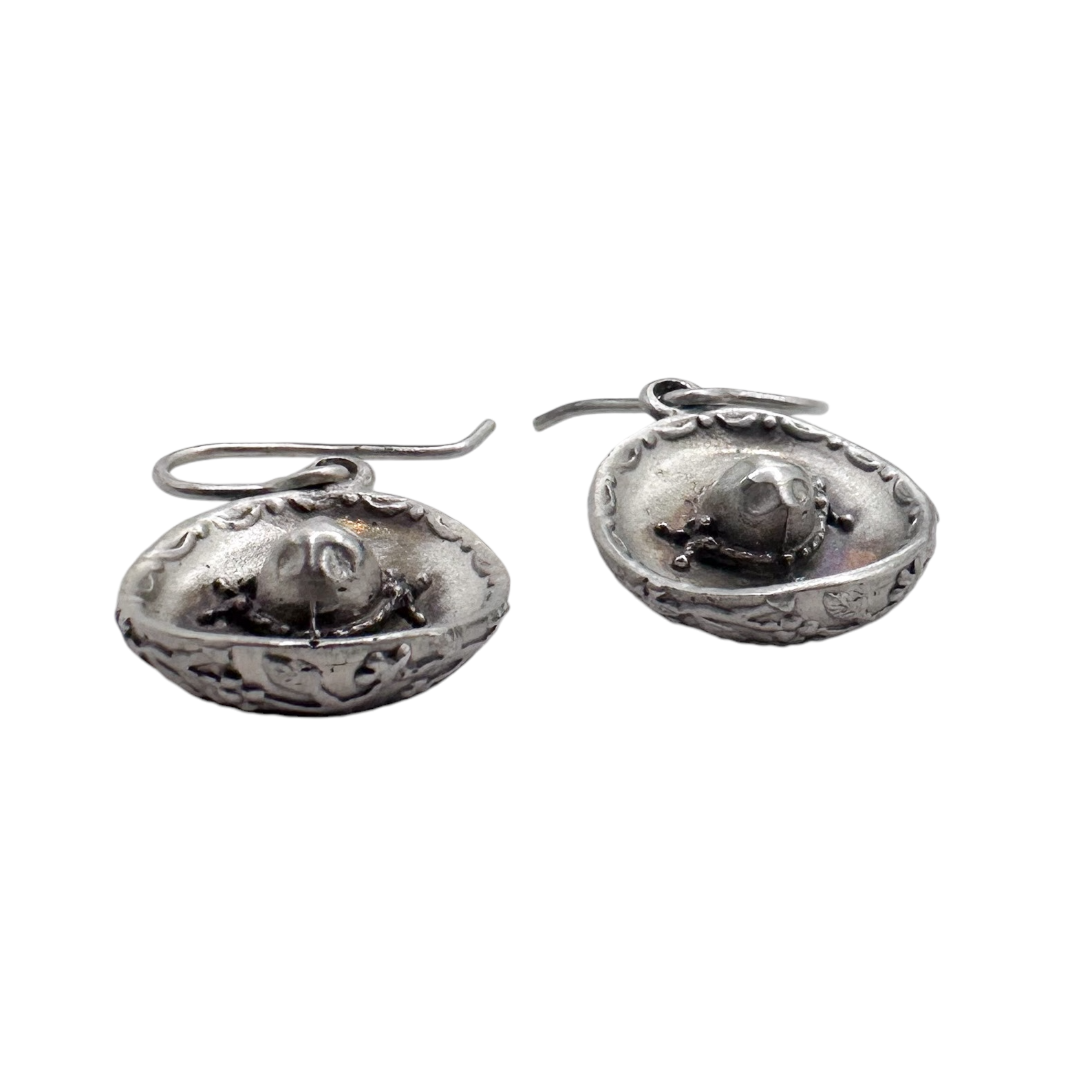 ARETES SOMBRERO DE CHARRO en plata .925. Hechos a mano con detalles finos y terminado antiguo
