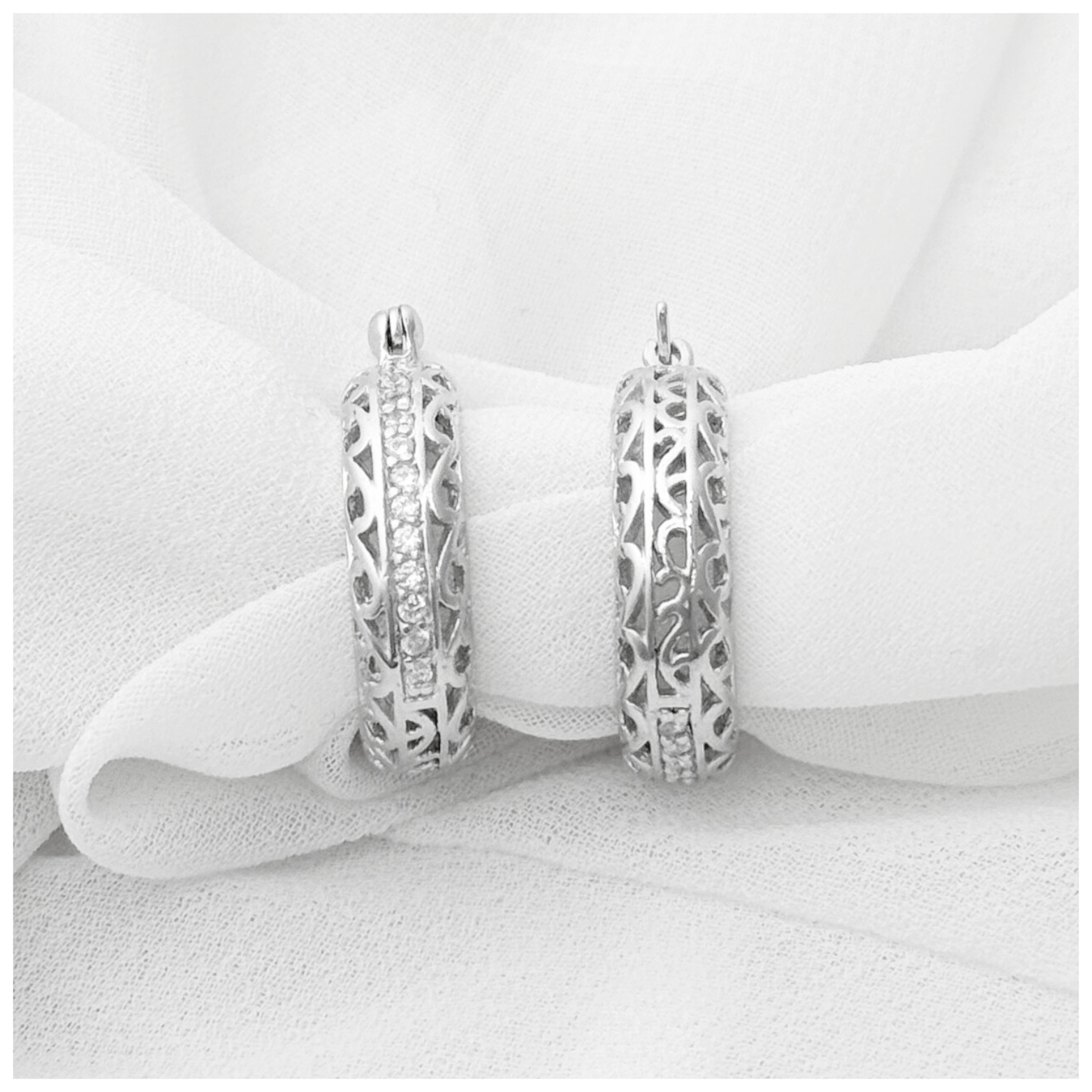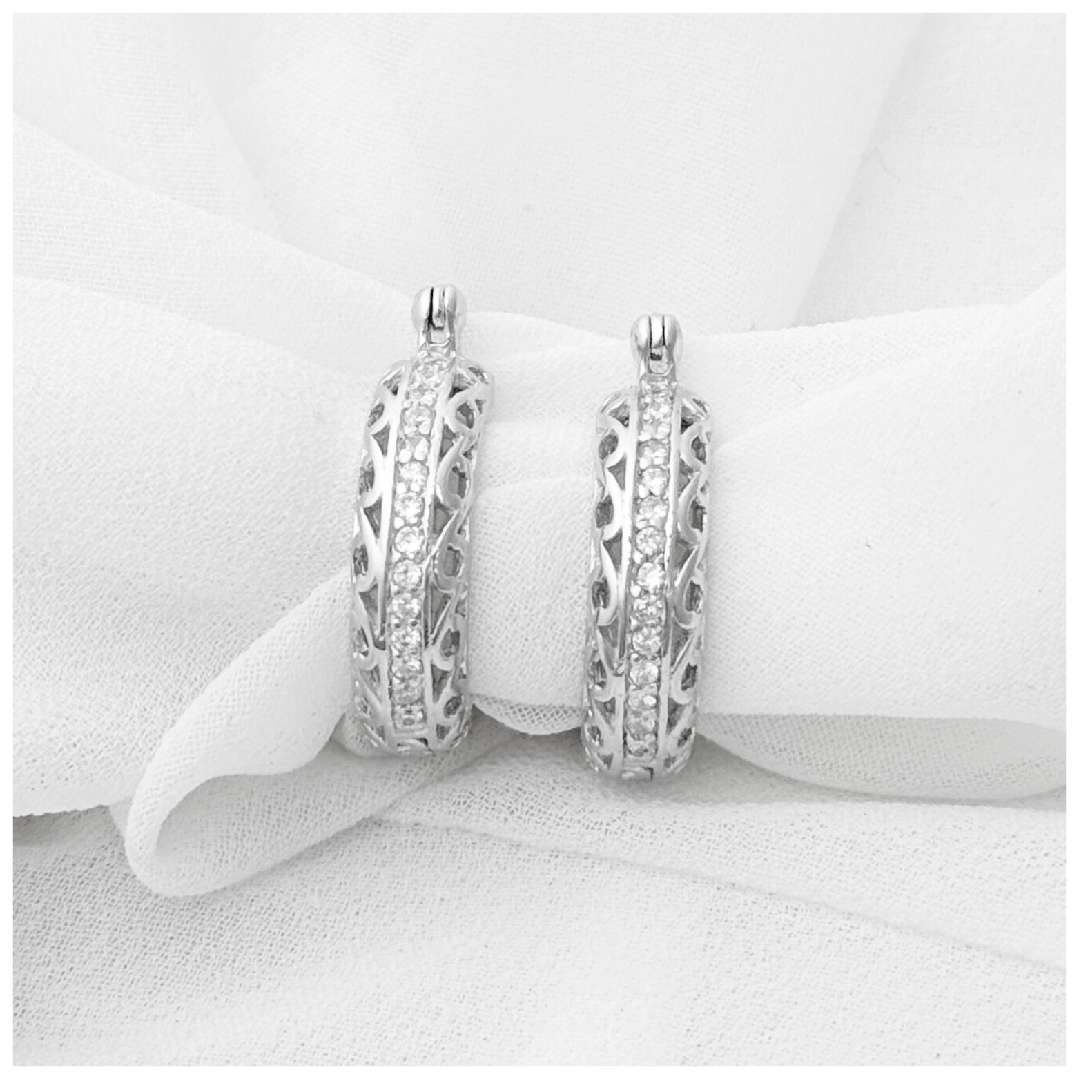 ARETE ARO CALADO CON CIRCONIAS AL CENTRO EN PLATA .925 RODIO