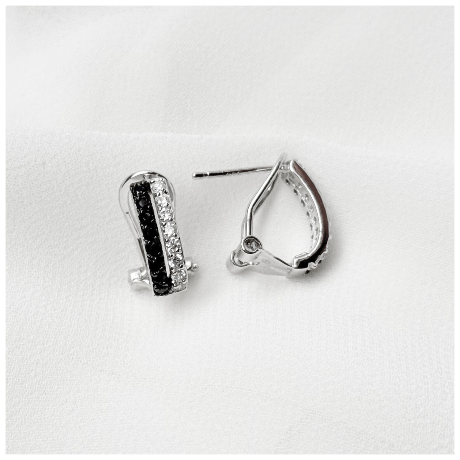 ARETE DOS LINEAS DE CIRCONIA BLANCA Y NEGRA CON BROCHE DE PATENTE FABRICADOS EN PLATA .925 CON RODIO