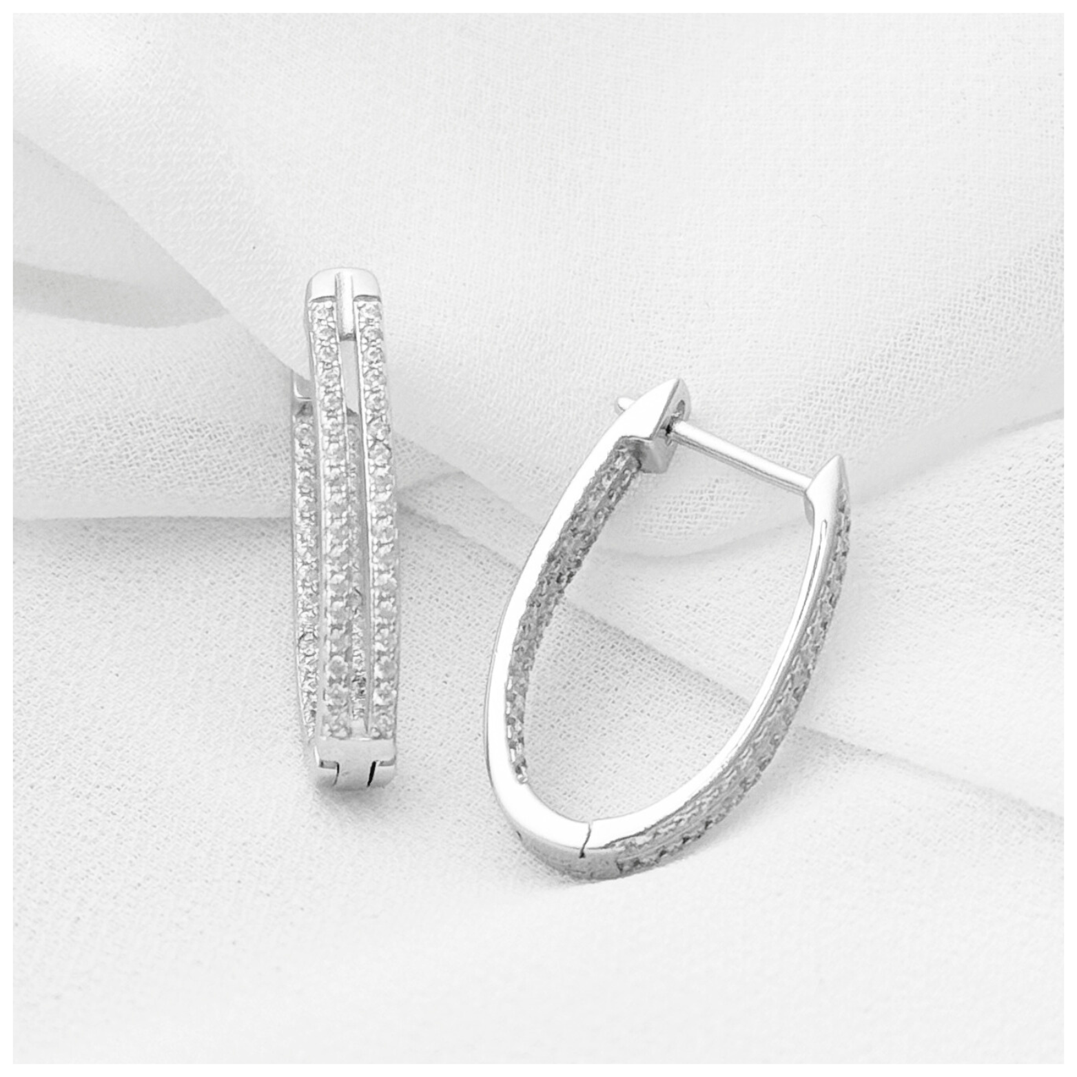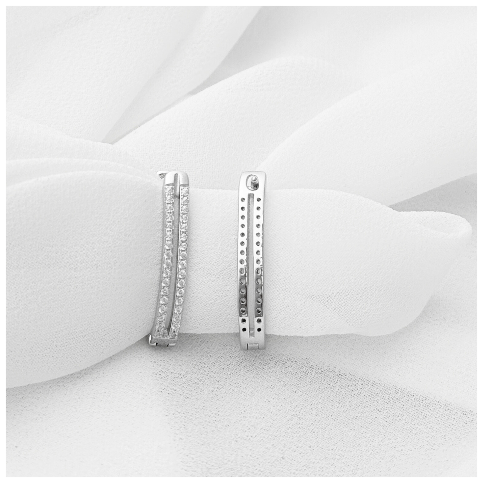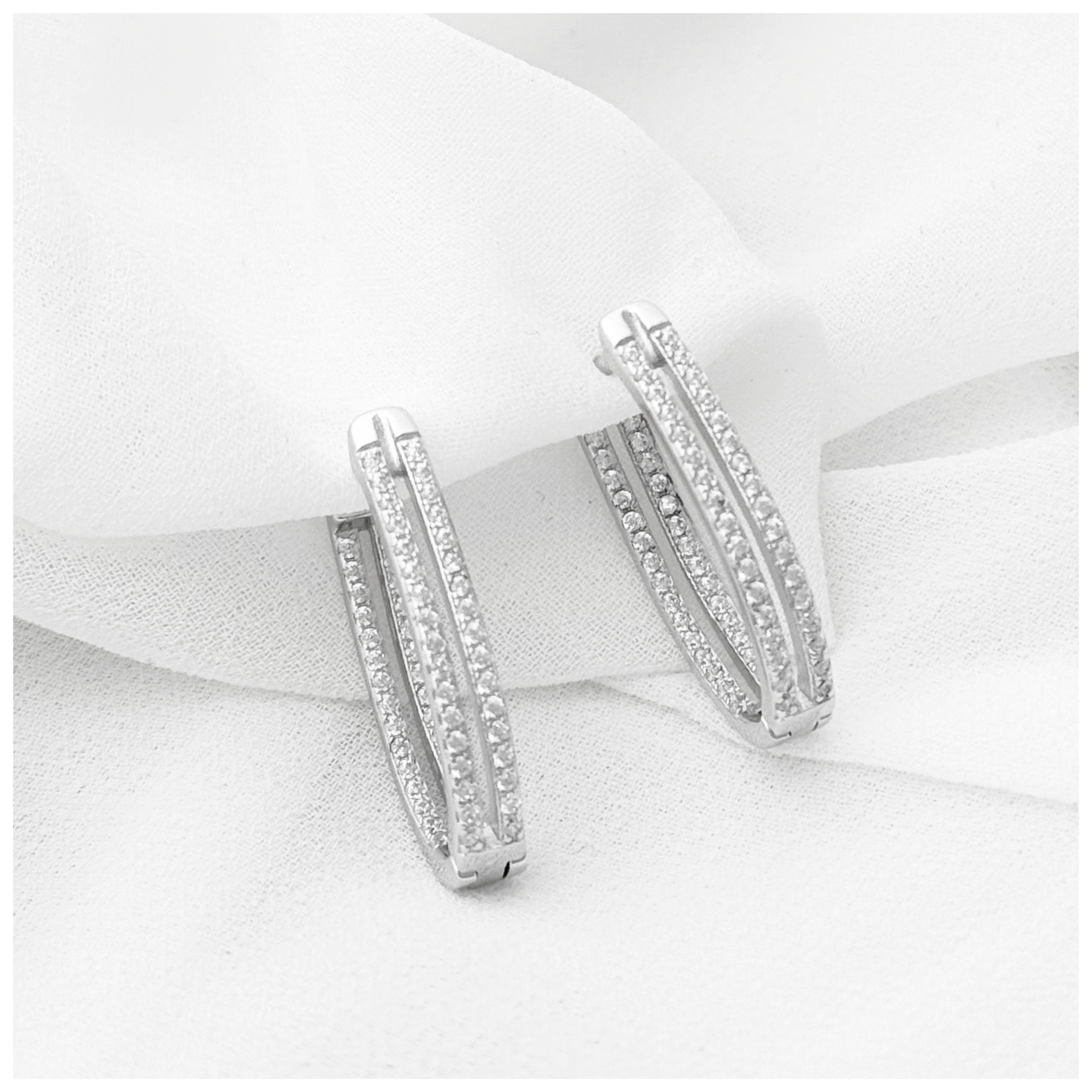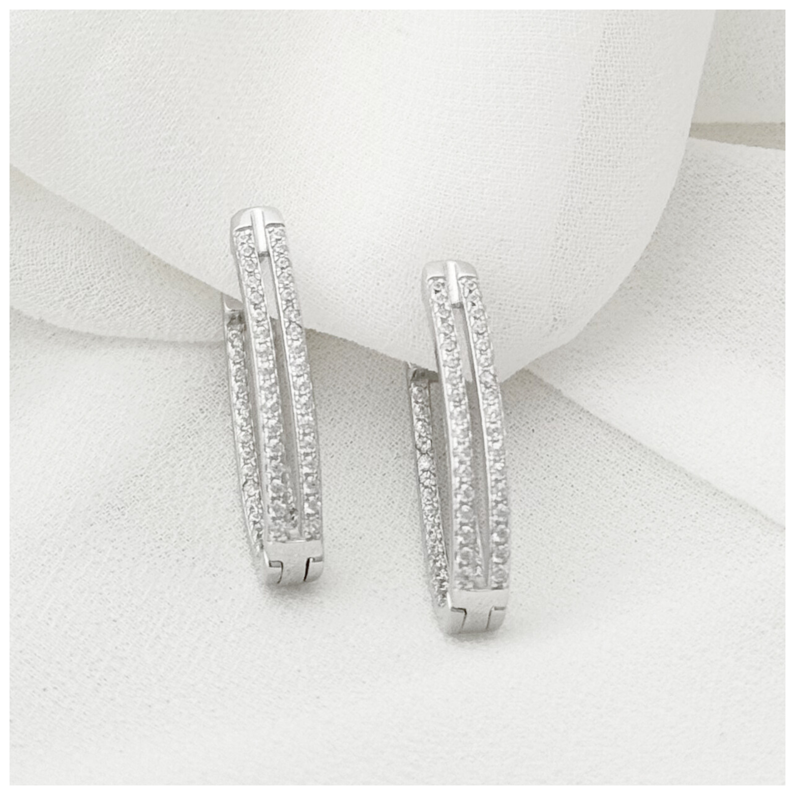 ARETE TIPO ARO DOBLE CON CIRCONIAS EN TERMINADO PAVE ELABORADOS CON PRECISION Y ELEGANCIA FABRICADOS EN PLATA .925 CON RODIO