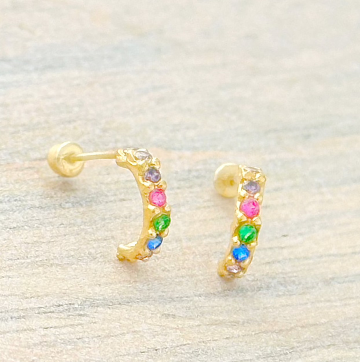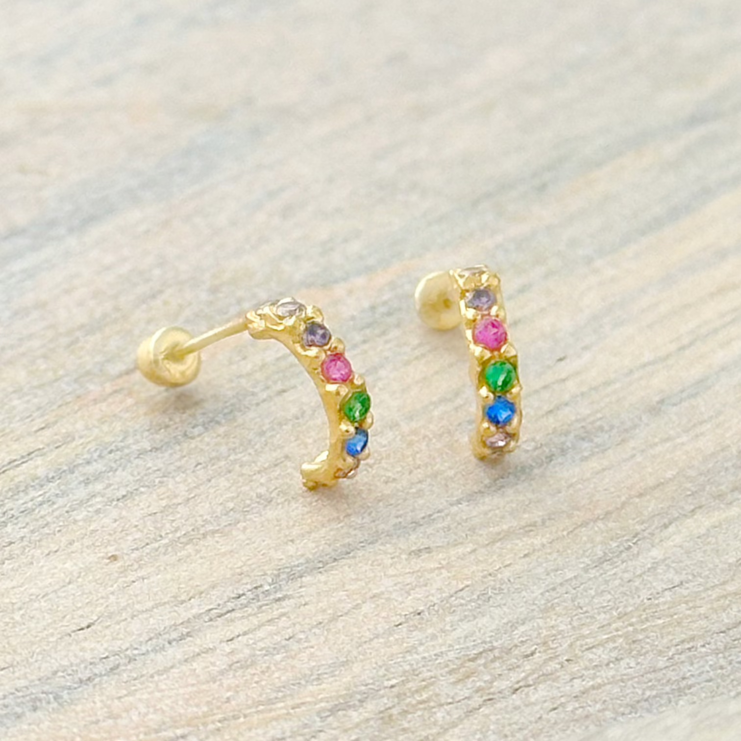 BROQUEL MEDIA ARRACADA CON ZIRCONIAS DE COLORES EN ORO 10K
