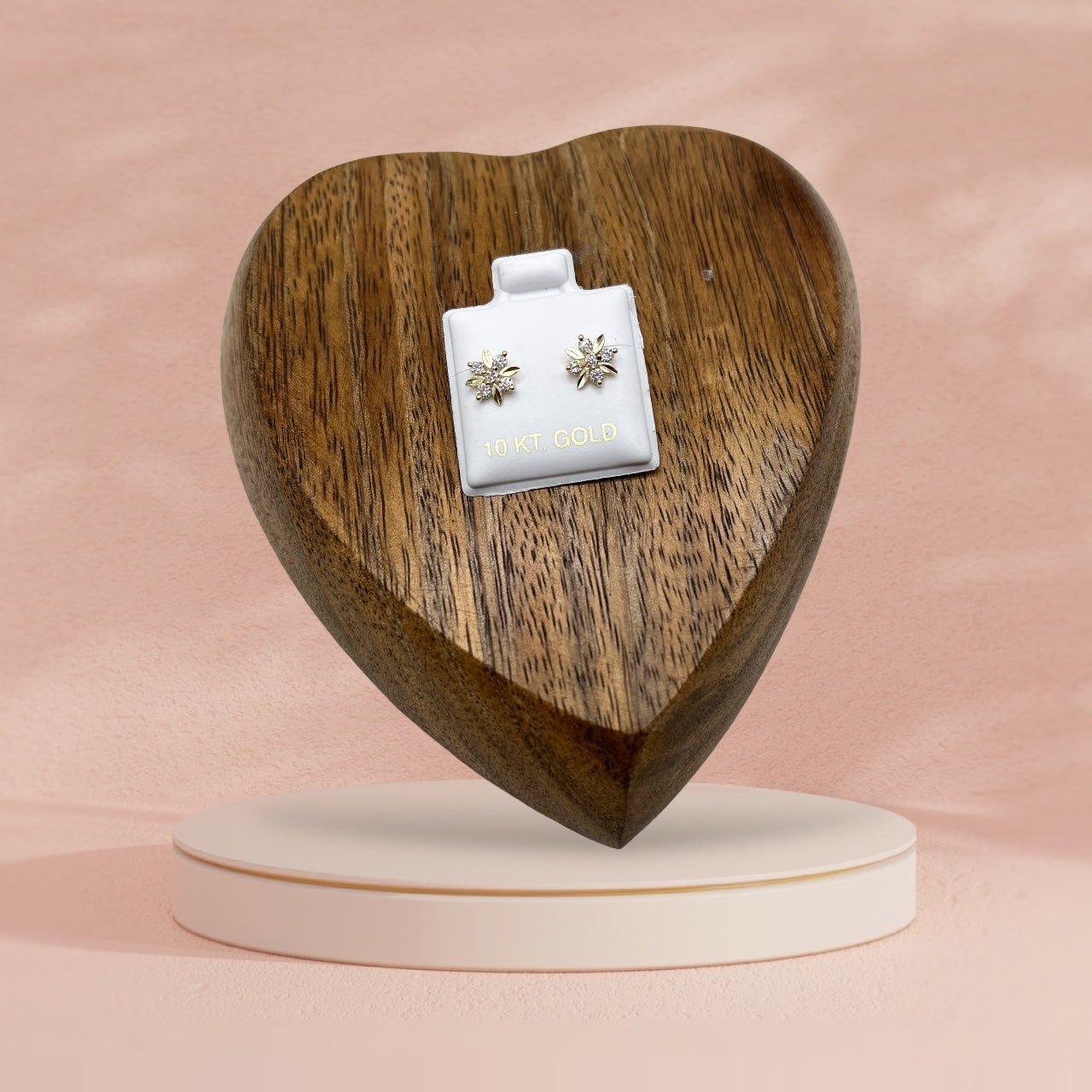 BROQUEL FLOR HOJAS CON ZIRCONIA ORO 10K