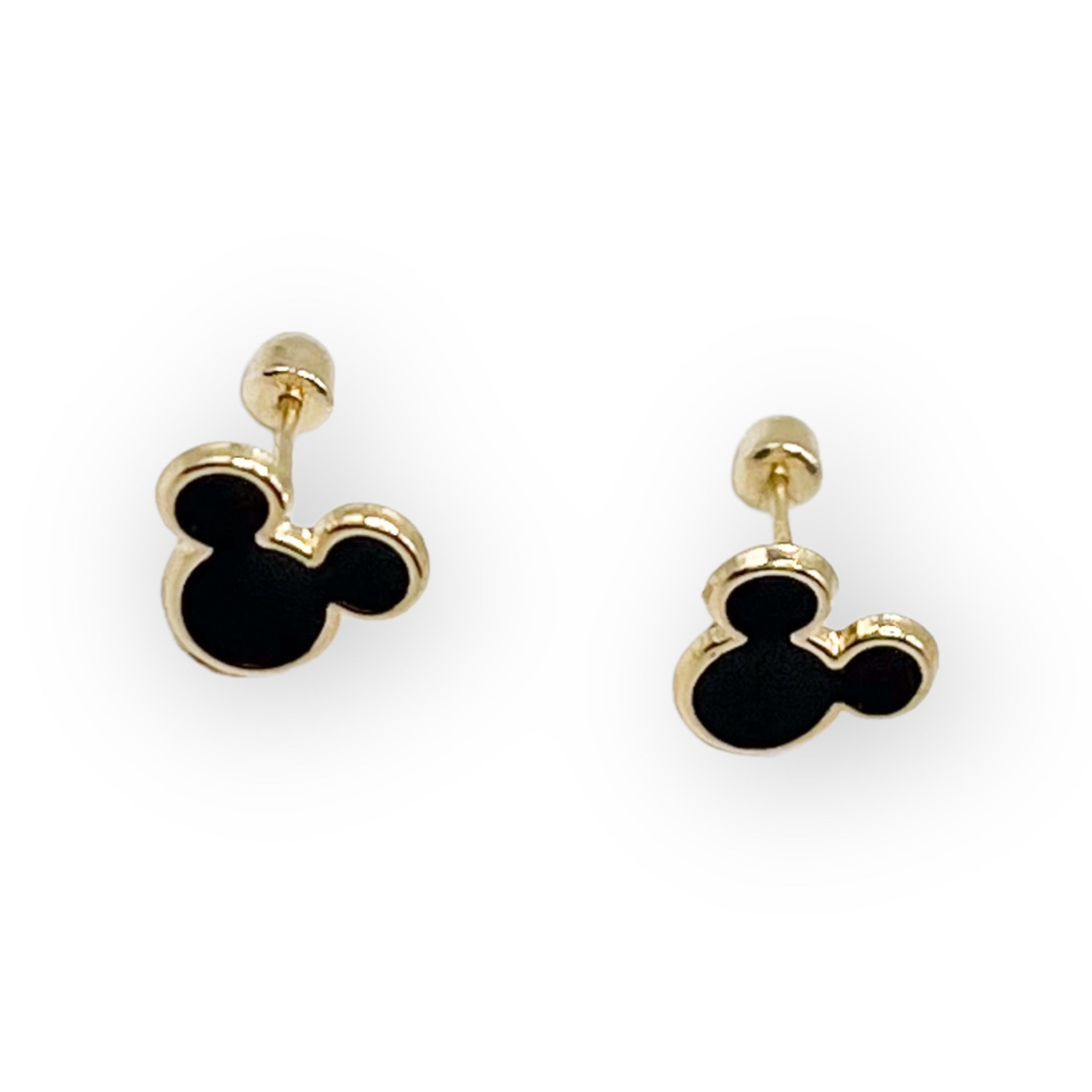 BROQUEL MICKEY ESMALTADO NEGRO ORO 10K DISNEY