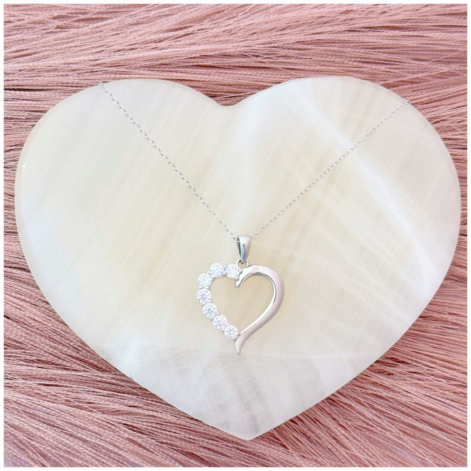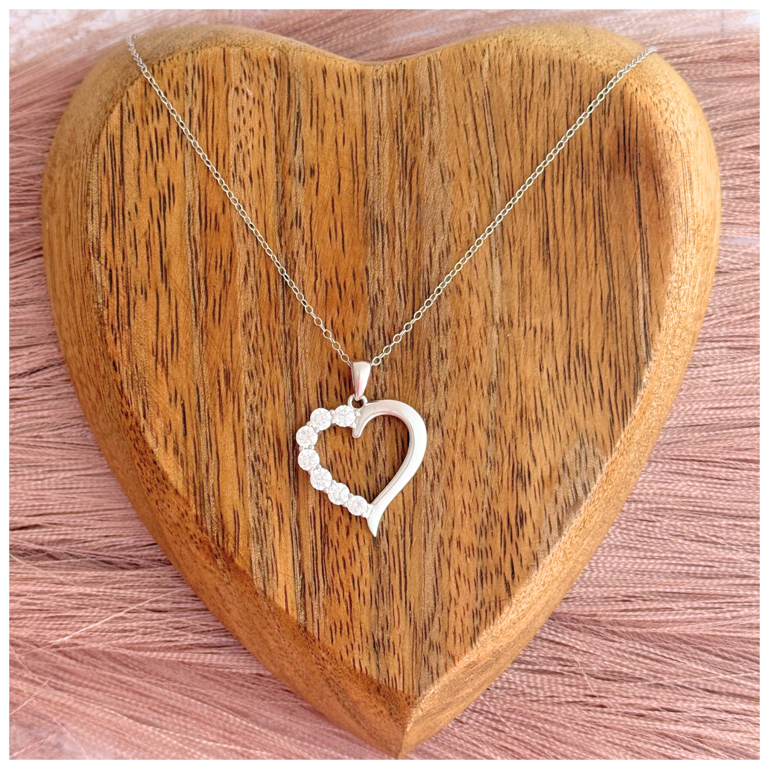 CADENA CON CORAZON LISO Y CIRCONIAS BLANCAS PLATA .925 CO RODIO