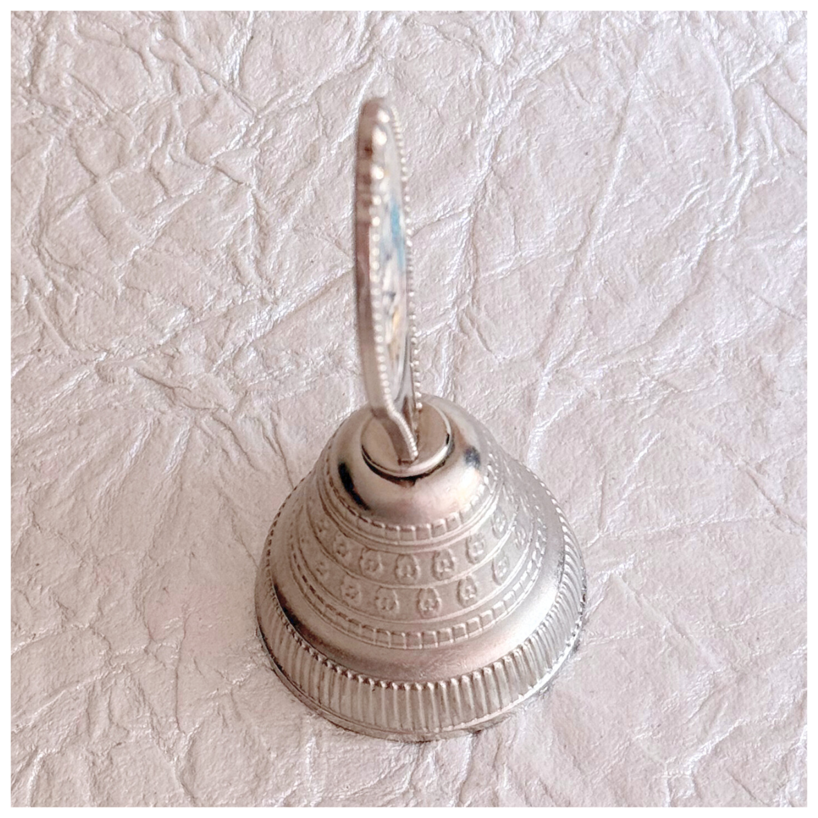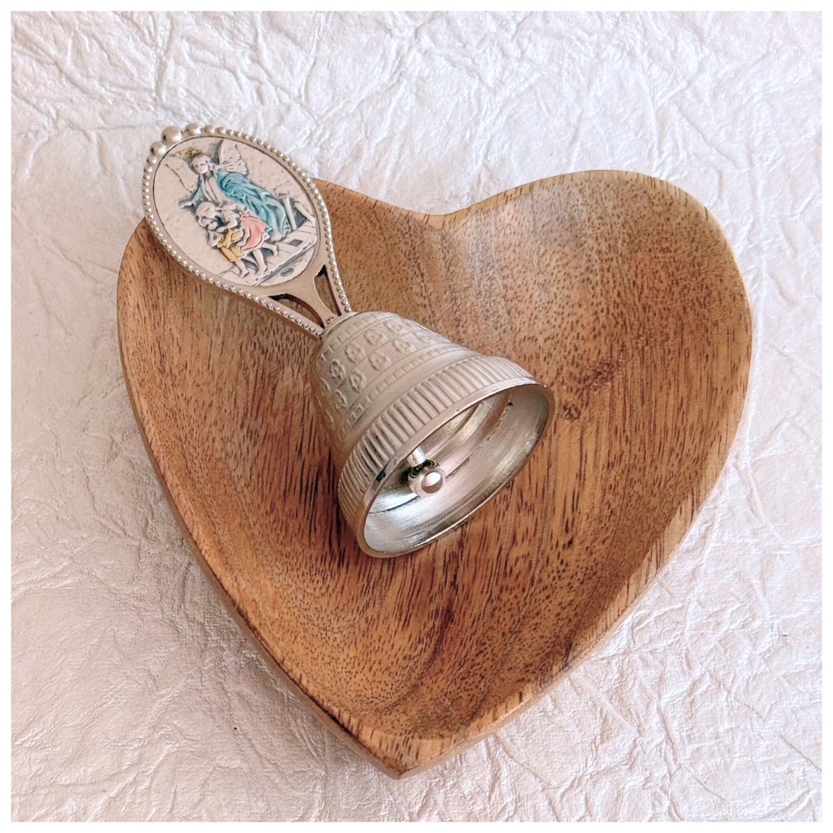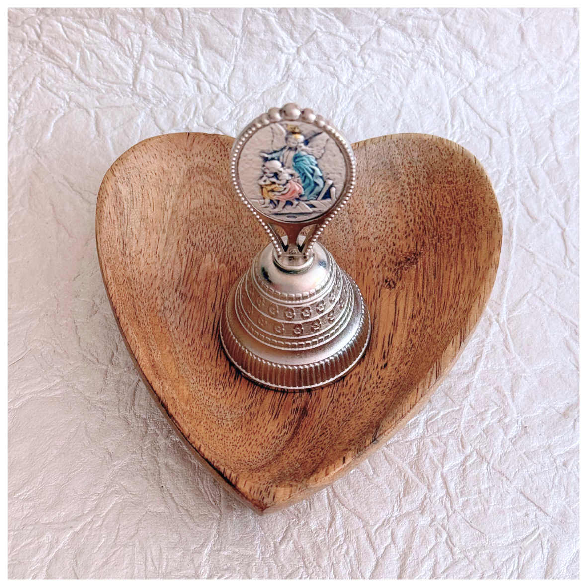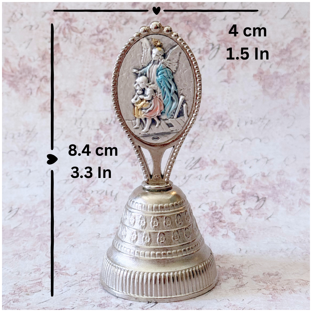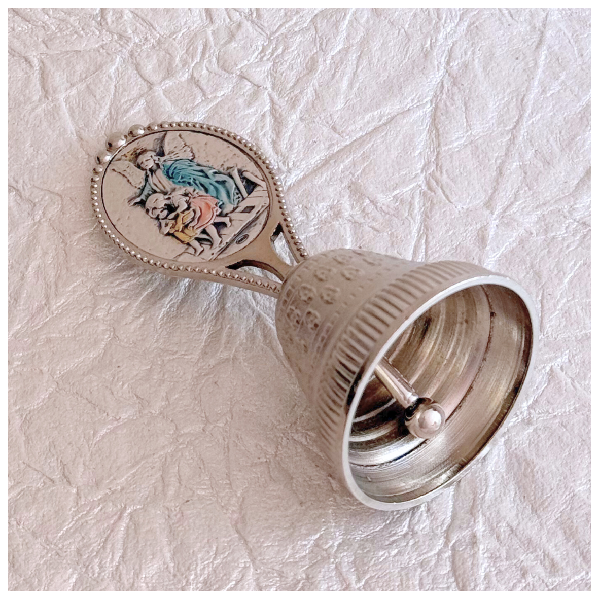 HERMOSA CAMPANA ITALIANA CON IMAGEN DEL ANGEL DE MI GUARDA DE PLATA A COLOR .