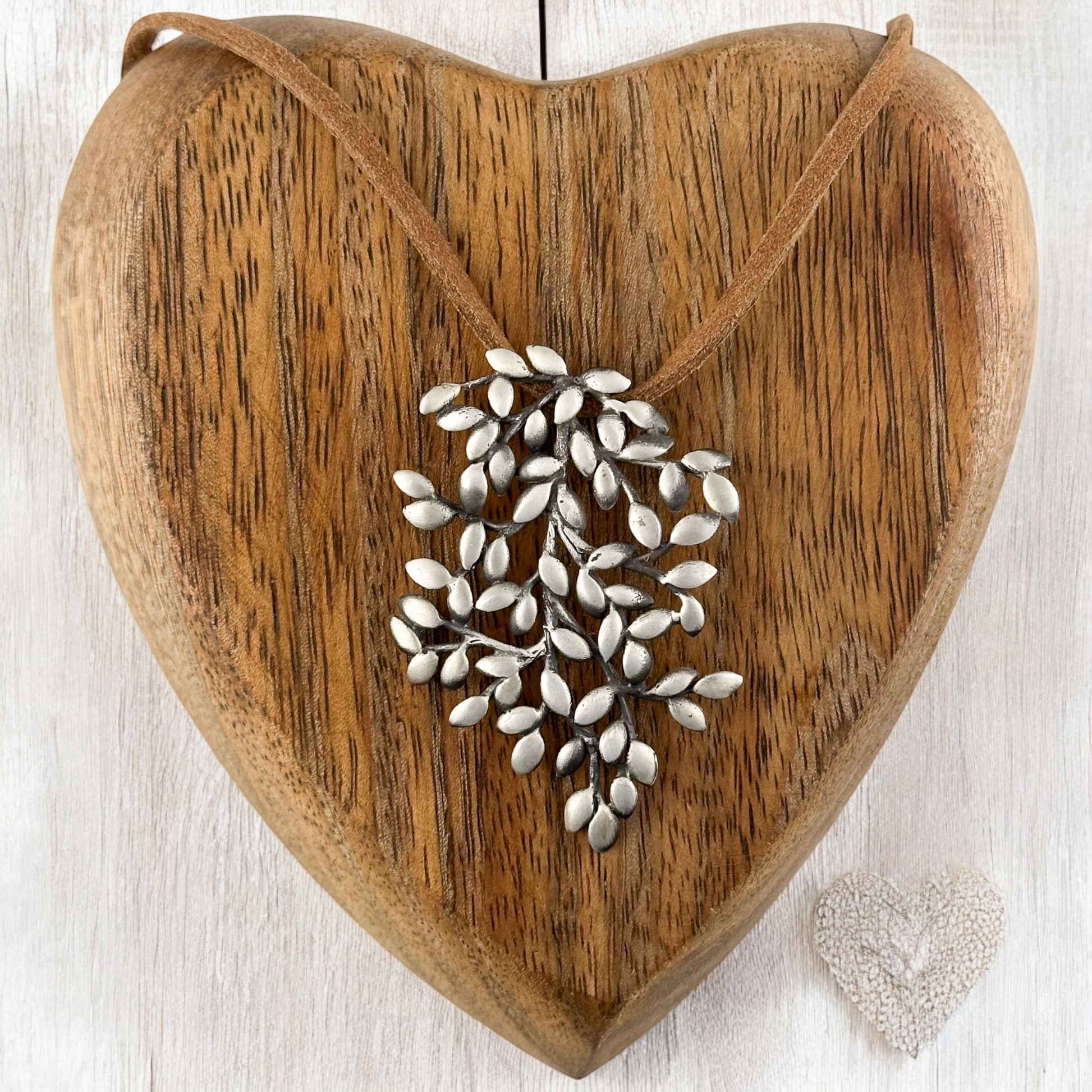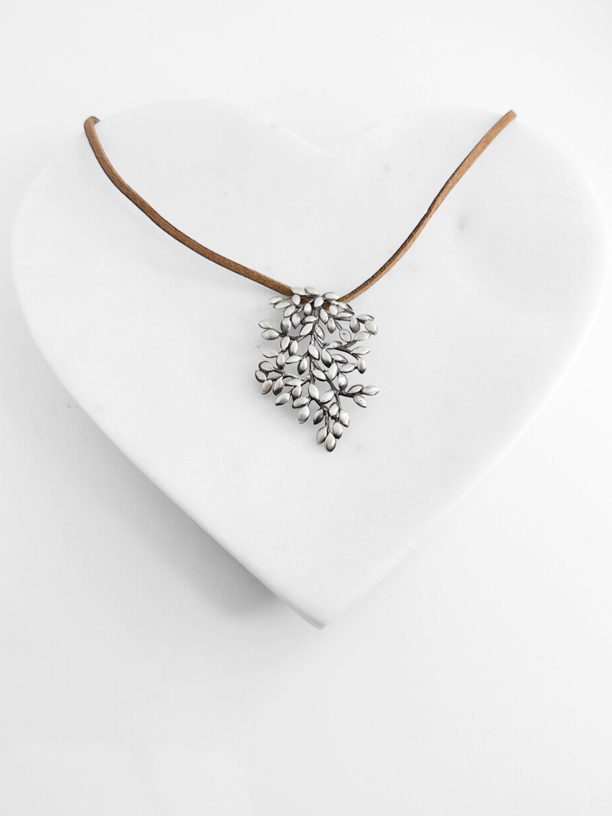 DIJE RACIMO DE HOJAS Collar gamuza con dije de racimo de hojas en plata .925 con terminado antiguo