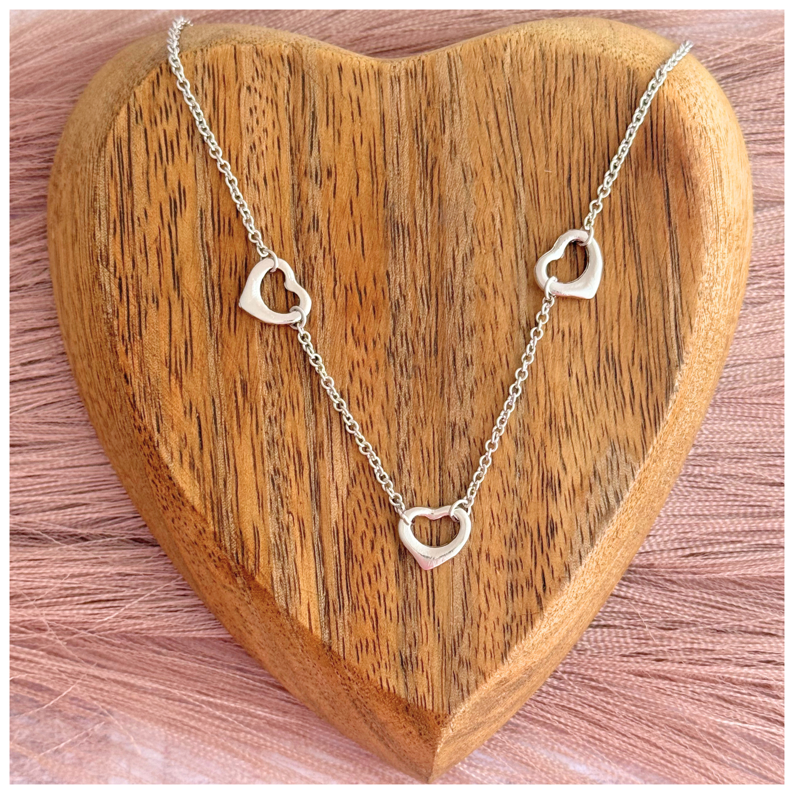 HERMOSA GARGANTILLA CON TRES CORAZONES LISOS EN PLATA .925 CON RODIO UN DETALLE CON AMOR PARA ESE MOMENTO INOLVIDABLE