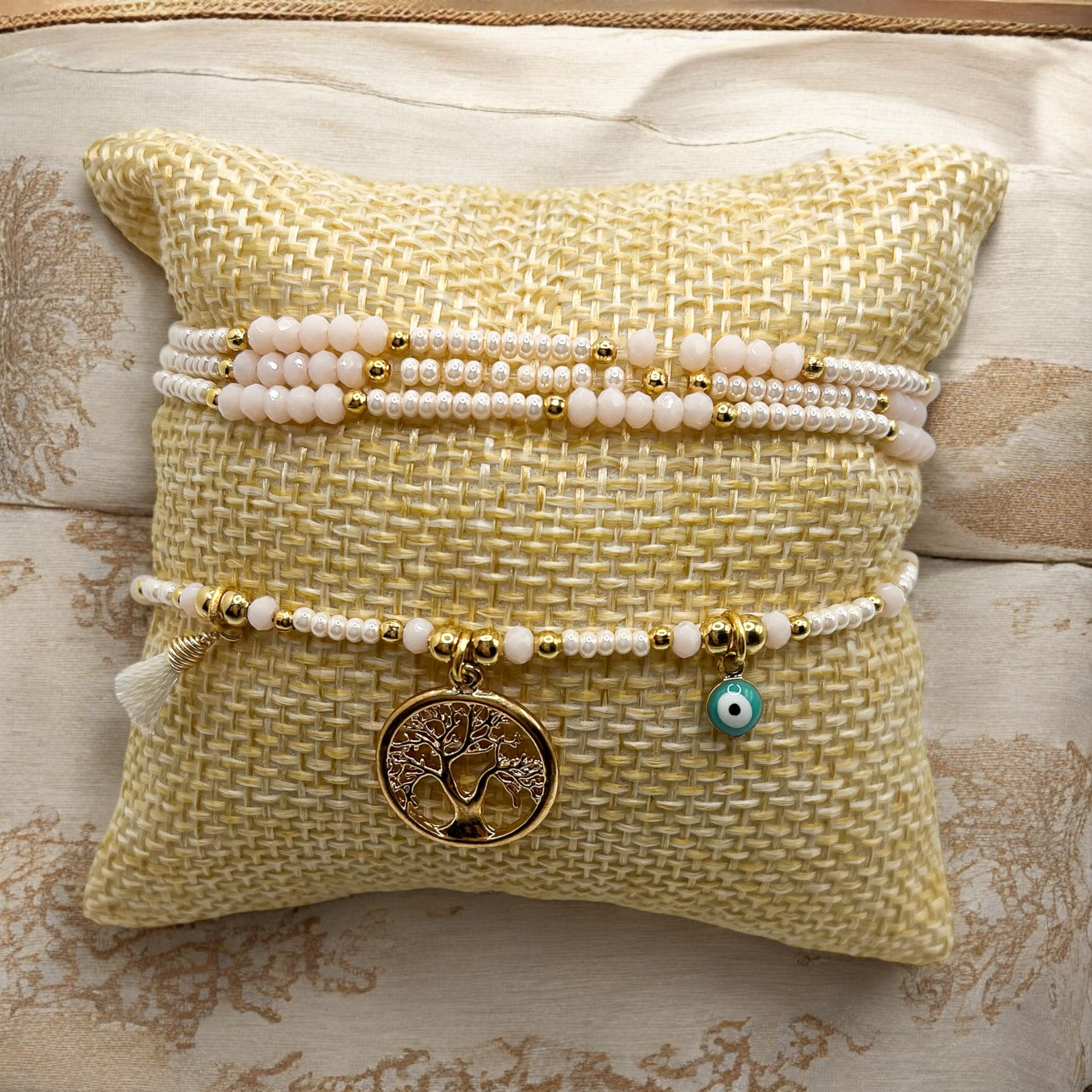 PULSERA CHAQUIRA ARBOL DE LA VIDA. Juego de dos piezas .Pulsera engarzada a mano chaquira con broche con su DIJE ARBOL DE LA VIDA ,colgante en chapa .