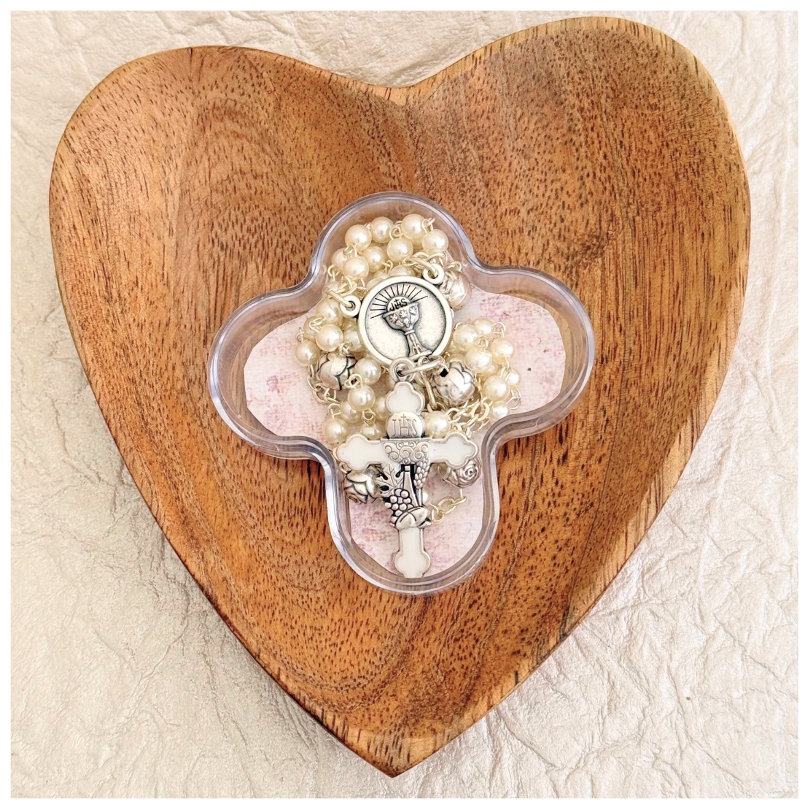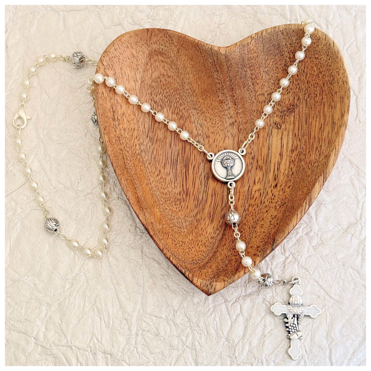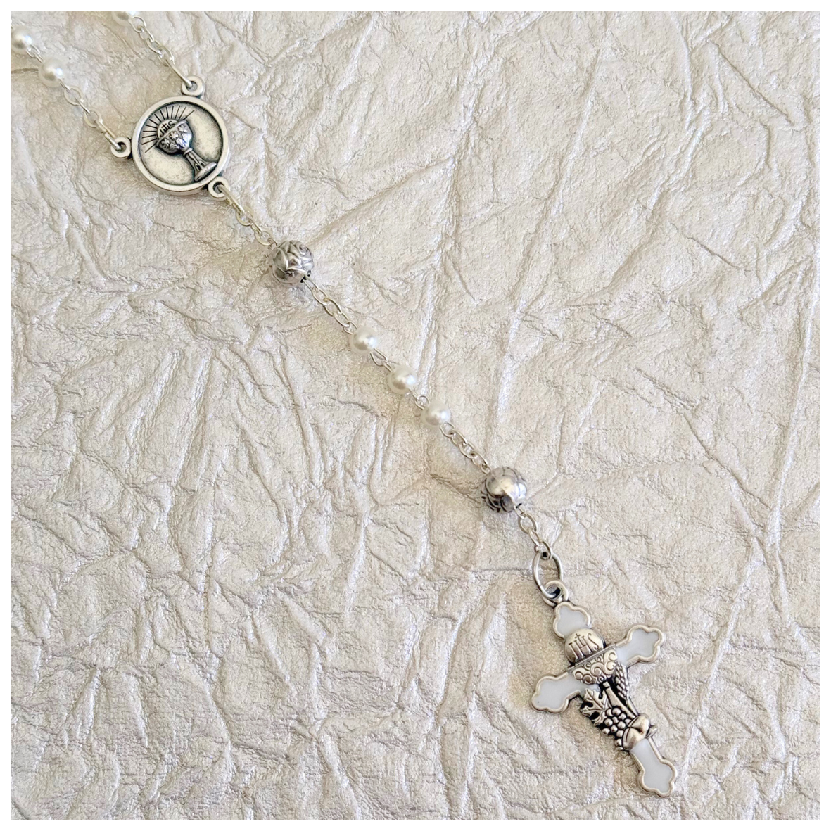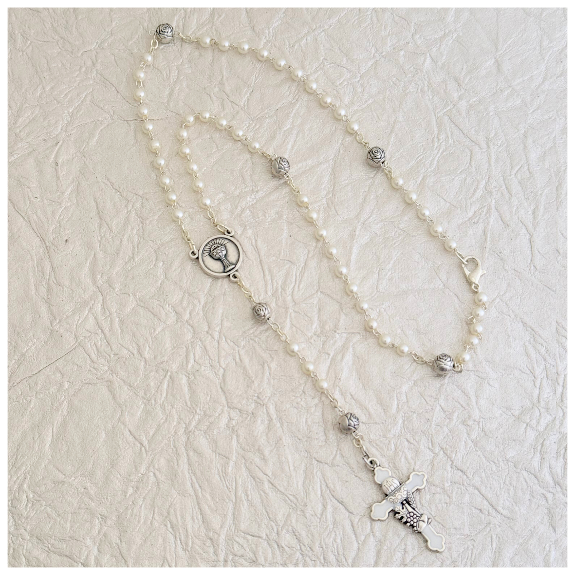 HERMOSO ROSARIO PRIMERA COMUNION CON PERLAS CON BROCHE