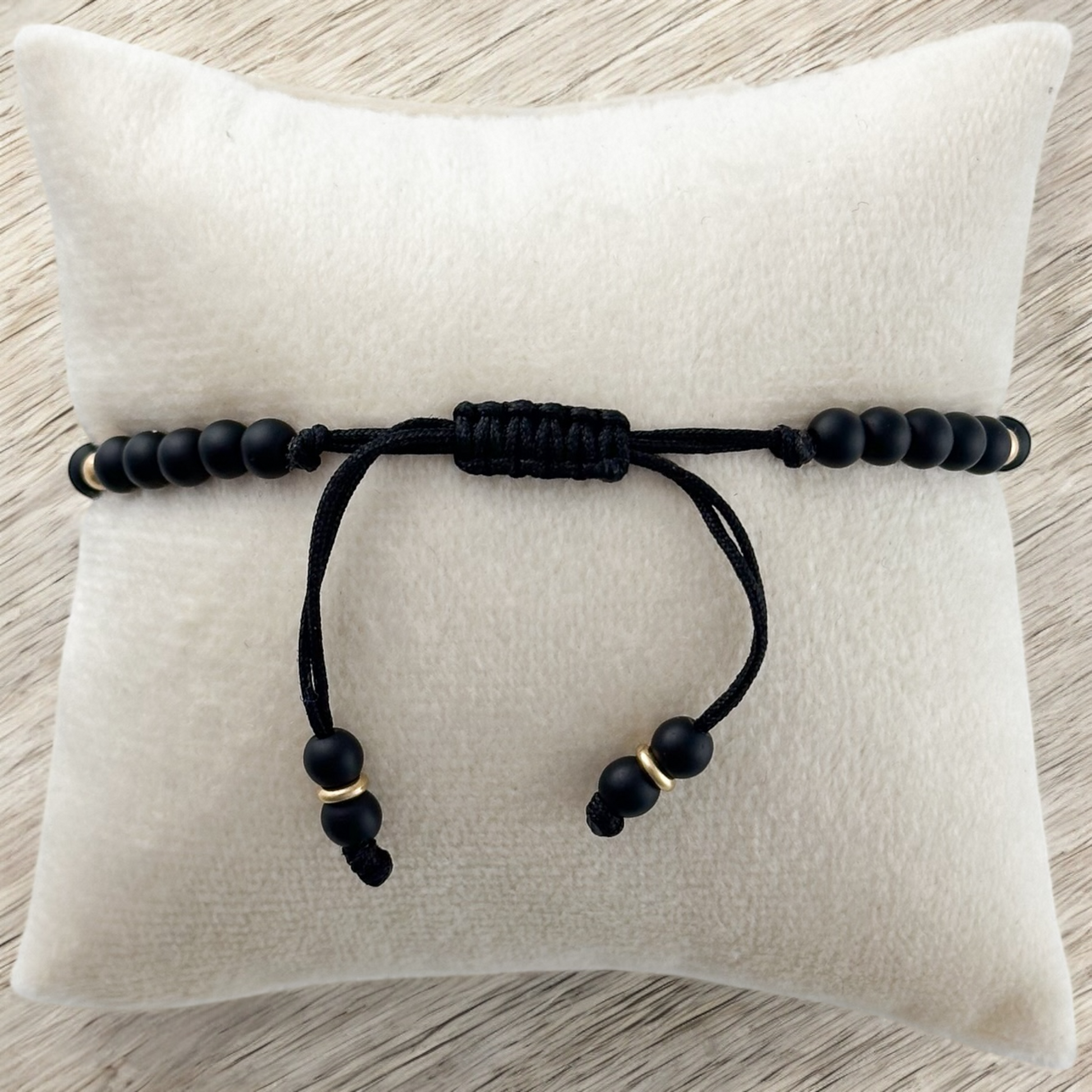 Pulsera piedra natural con medalla de San Benito con bisel, con broche tejido ajustable .