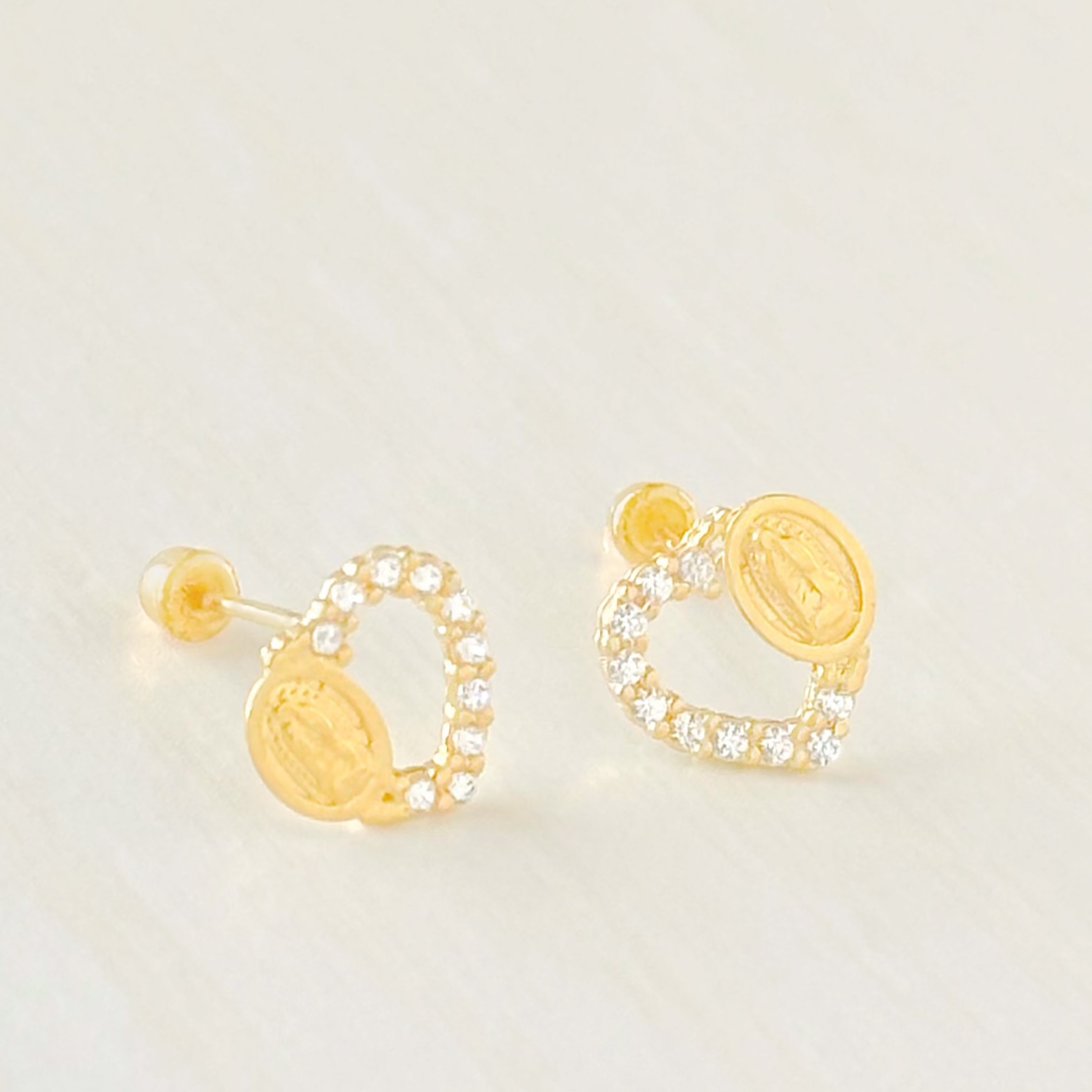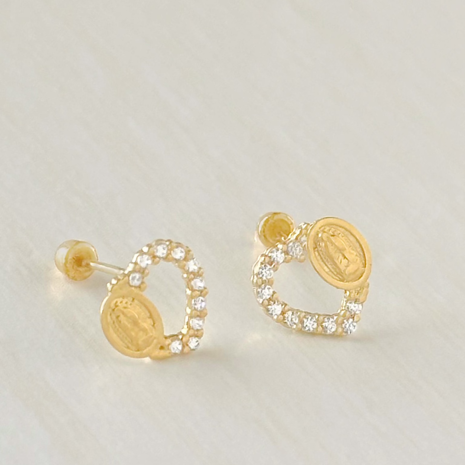 BROQUEL VIRGEN DE GUADALUPE CORAZON ZIRCONIA ORO 10K